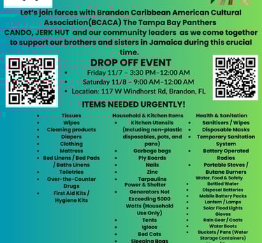 Supporting the Caribbean community in Tampa through volunteer efforts and generous donations for impactful initiatives.